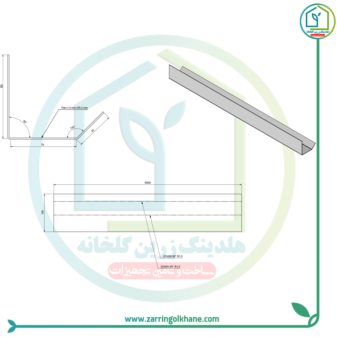 خانه خم و برشکاری ورق ناودان (آبراه) گلخانه ناودان دوپوش ( زاویه یکطرف کف 135 درجه )