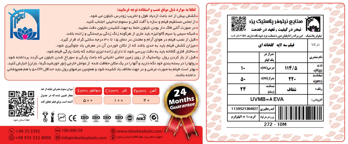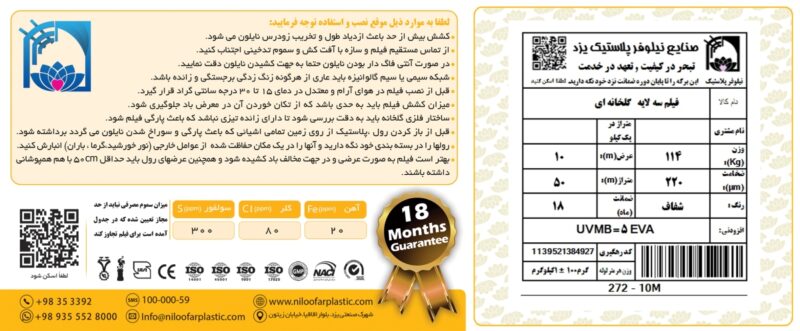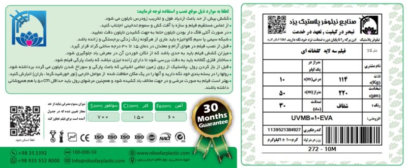 💰 قیمت نایلون گلخانه‌ای 10 متری – برند نیلوفر