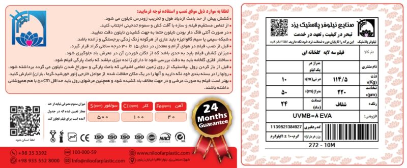 نایلون گلخانه ای عرض 10 متر با 8،10و5درصد یووی نیلوفر
